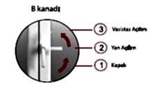 - Diğer kanat (B) kapatılır. Kol 2 No’lu konumdan 1 No’lu konuma getirilerek kanat kilitlenir.