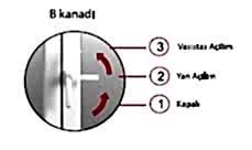 - Kanat tamamen kapandıktan sonra sol kolu 2 No’lu konumdan 1 No’lu konuma getirilerek kanat kilitlenir.